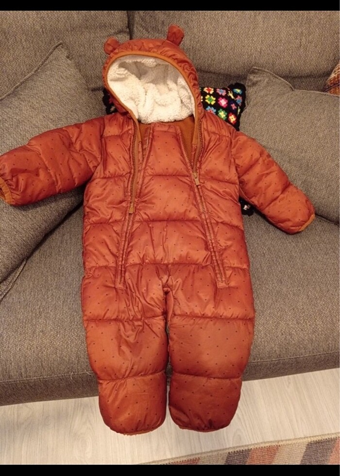 Sayılı giyildi, fotoda göründüğü gibi sorunsuzdur, aşırı kaliteli bir ürün - derecelerde bile giydirebilirsiniz, ben 5 derecelerde sadece kısa kol zıbınla giydirdim. 6-12 ay bedeni.