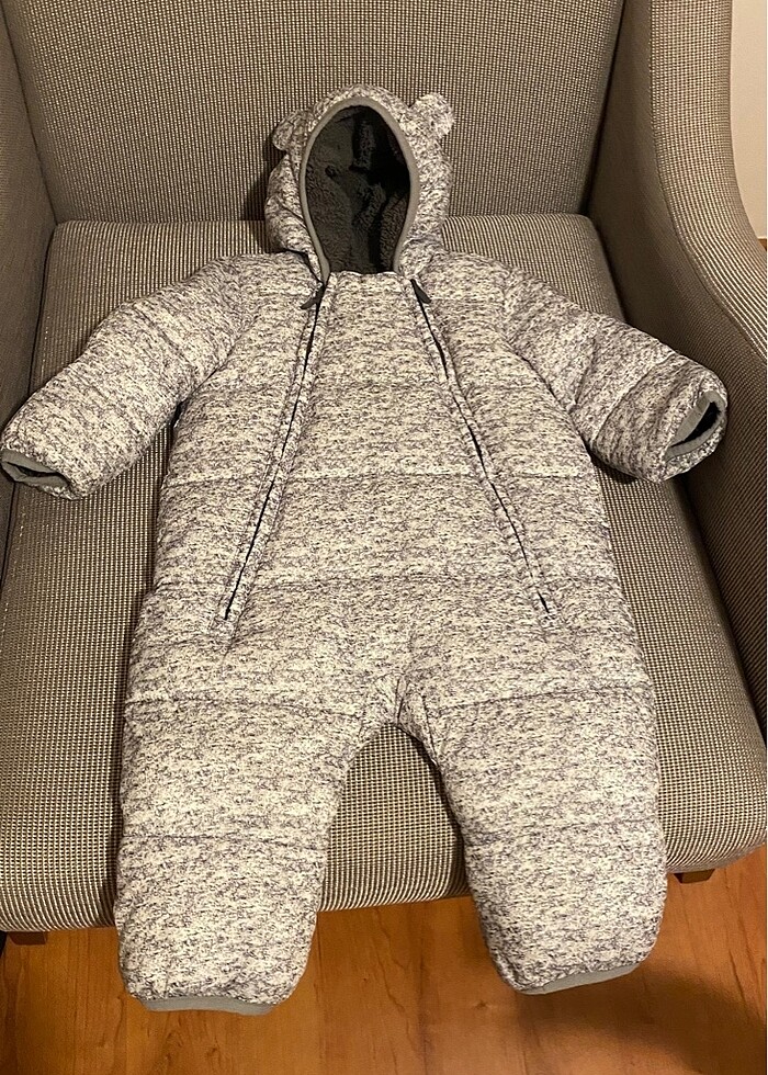 0-6 ay unisex kar tulumu; Gap Kids mağazasından geçen sene alındı, bir kaç kere dışarı çıkarken giydirdim. Çok çok sıcak tutuyor, el ve ayak kısmı katlanarak yağmur ve soğuk geçirmez birer eldiven ve patiğe dönüşüyor. İçi full polar, bebeğim saatlerce dışarda gezdikten sonra bile sıcacık kalıyordu içinde.