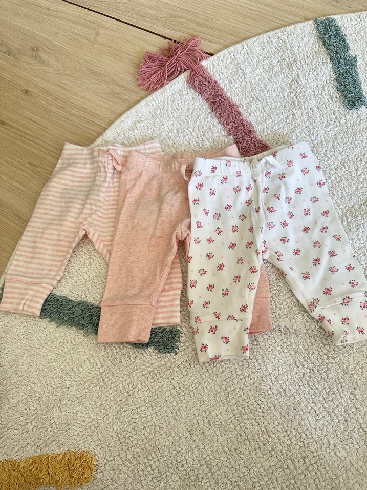 Bebek kız için uzun üçlü pantolon seti. Pastel tonlarda, yumuşak dokulu ve zarif çiçek desenli.