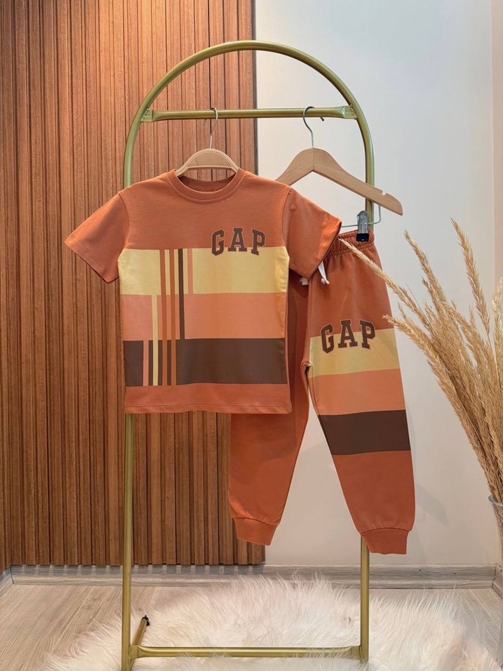 Yumuşak ve sıcak kumaştan üretilmiş, baskılı GAP yazılı, kahverengi, bol kesim erkek çocuk eşofman takımı. Sokak stiline uygun rahat tasarım. Üst penye,alt 2 iplik 23