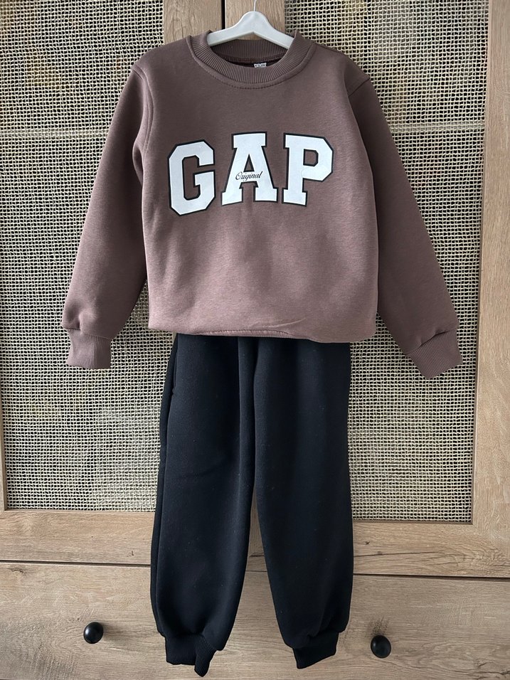 GAP Baskılı Kahverengi Sweatshirt ve Siyah Eşofman