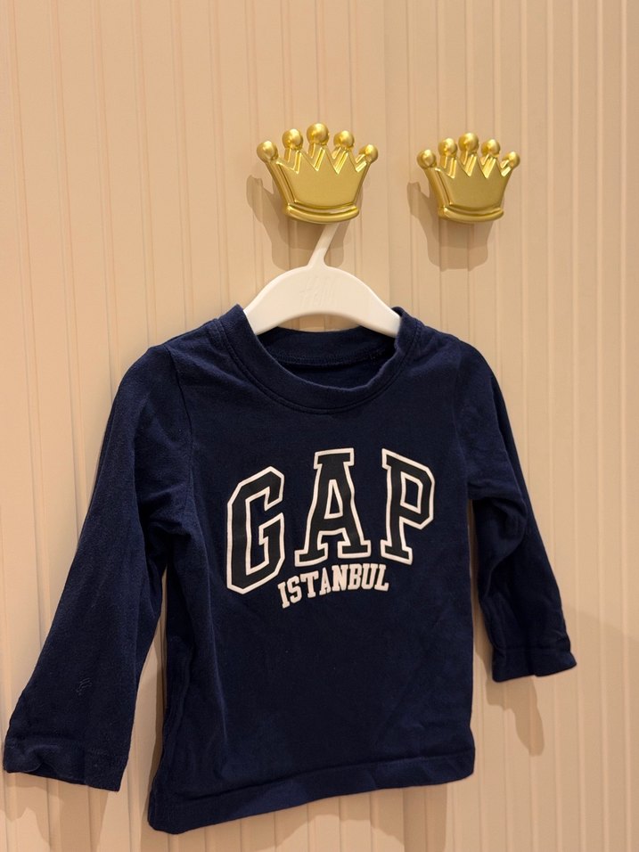 Gap marka orijinal çocuk sweatshirtü biraz dar kesimdir daha küçük aydaki bebeklerede olur. 3 4 defa giyildi. Solma vs yok yeni