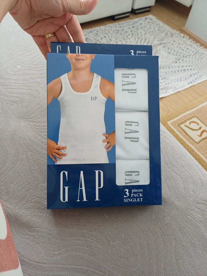 GAP markalı, beyaz baskılı erkek atletlerinden oluşan 3'lü kutusunda 100% pamuklu. 14_15yaştir