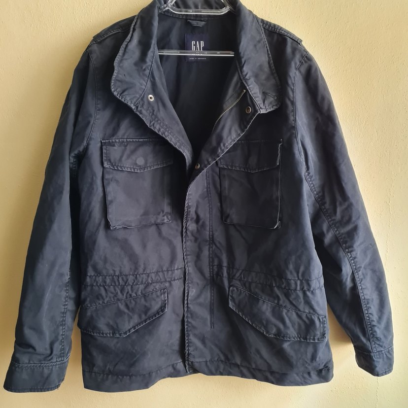 Düğmeli, kırçıllı gri denimden yapılmış erkek ceket. Notlu yaka, uzun kol ve normal midi boyda, rahat kesim. Günlük ve sokak stiline uygun.