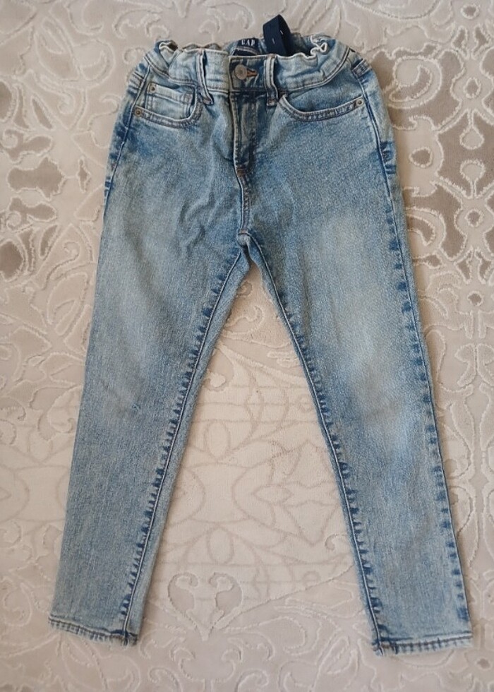 GAP,erkek cocuk,7 yas,kot pantolon. Dizinde ufak yirtik var,baska hic bir kusuru yok. Beli ayarlanabilir lastikli
