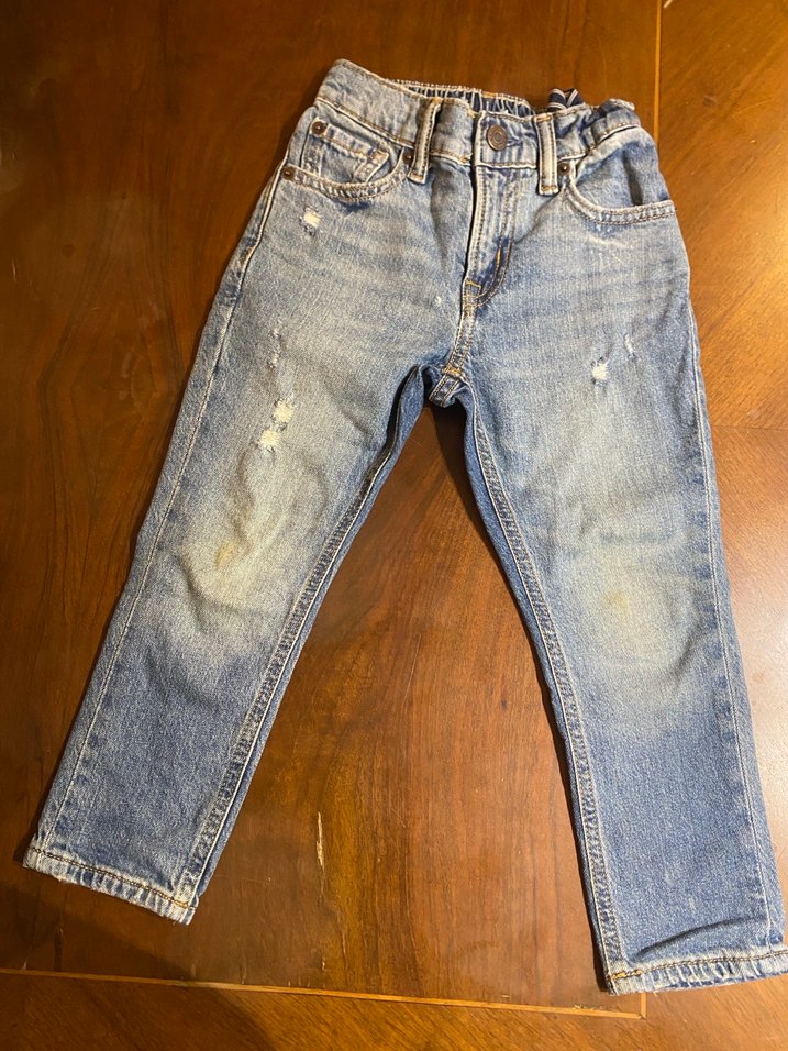 Gap çocuk pantolonu. 4 yaşa uygundur. Beli lastikle ayarlanabilir. Dizlerinde iz var resimde paylaştım. Bol kesim, tokalı erkek çocuk denim pantolon. Sokak stiline uygun, soluk bej renkte rahat bir tasarım.