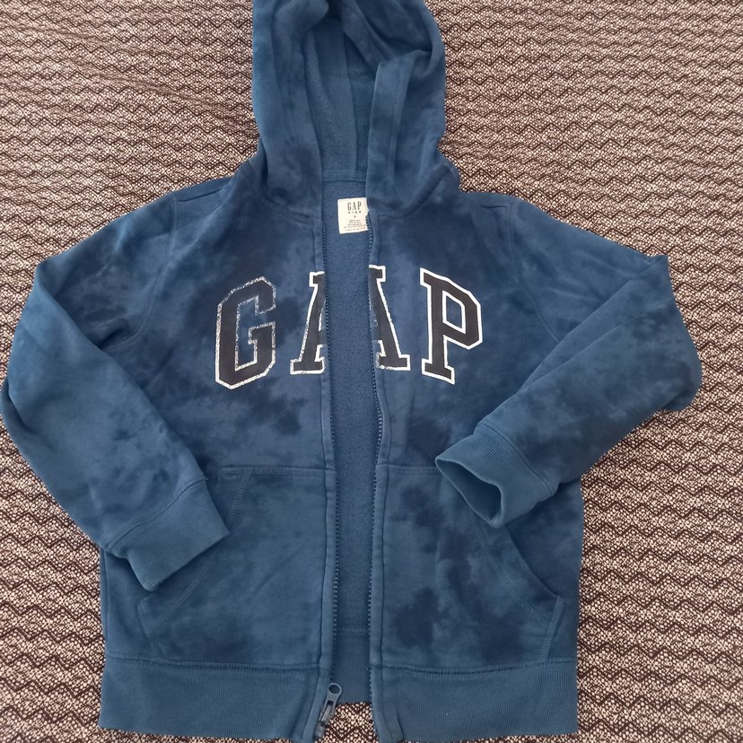 Erkek çocuklar için koyu mavi batik desenli, fermuarlı ve bisiklet yaka sweatshirt. Uzun kollu, bol kesim ve yumuşak tüylü kumaştan üretilmiştir. Önünde "GIAP" yazısı bulunur.