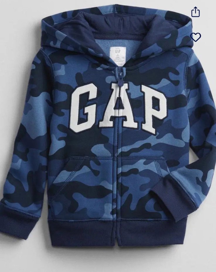 Erkek çocuklar için mavi kamuflaj desenli, fermuarlı ve bisiklet yaka uzun kollu sweatshirt. Yumuşak ve sıcak kumaştan üretilmiştir, GAP markalıdır. Her hangi bir sıkıntısı yoktur.