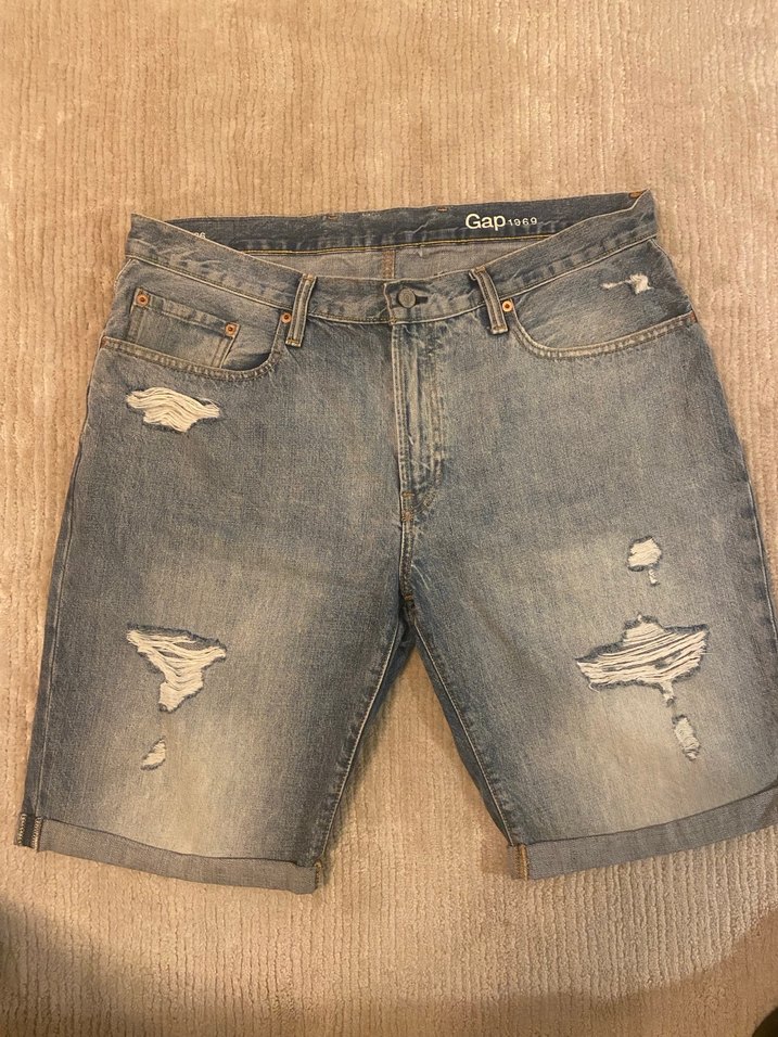 Bej renkli, yırtık detaylı ve bol kesim denim şort, günlük kullanıma uygun rahat ve şık bir sokak stili sunar.