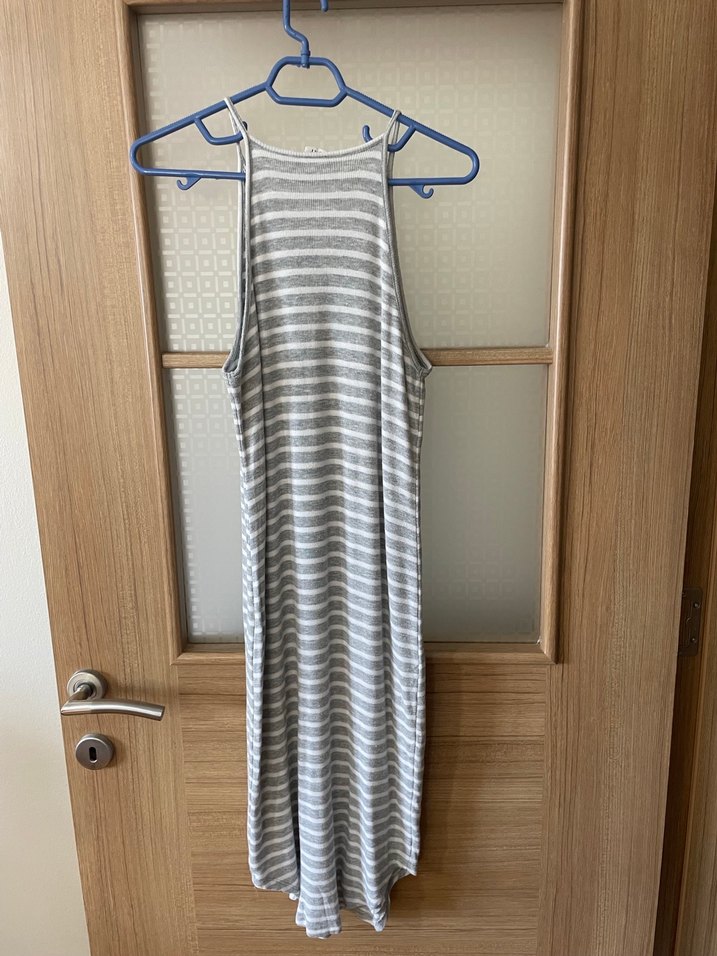 GAP Gri Çizgili Uzun İnce Askılı Elbise