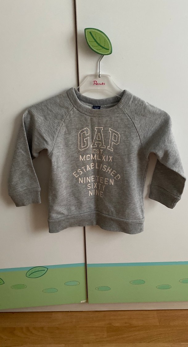 Orjinal GAP Gri renkli, yuvarlak yakalı ve uzun kollu çocuk sweatshirtü. Yumuşak dokulu ve baskılı örgü desene sahip, rahat kesim.