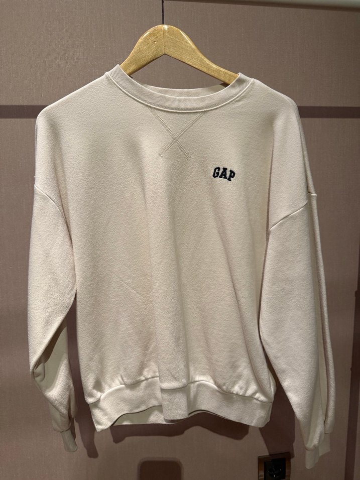 GAP markalı, gri renkte, yuvarlak yakalı ve uzun kollu bol kesim sweatshirt. Desensiz, rahat ve günlük kullanım için uygundur.