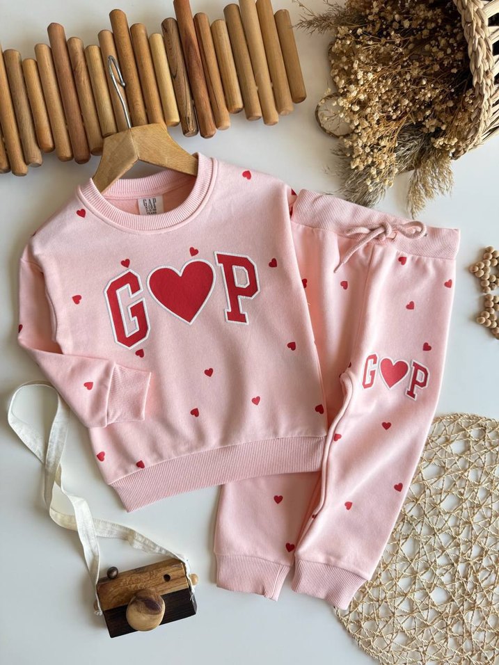 Pembe, bol kesim kız eşofman takımı, baskılı kalp desenli, uzun kollu ve yuvarlak yakalıdır. Yumuşak ve sıcak kumaştan yapılmıştır, dantel detaylarıyla trend bir görünüm sunar. GAP KALPLİ TAKIM 3 iplik Bedenler 2 3 yaş