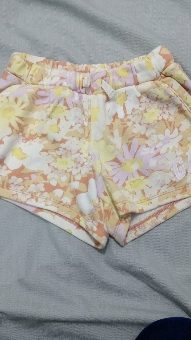 GAP Kids marka kız çocuk şort. 6–7 yaş, S beden. Çiçek desenli, pastel tonlarda. Normal bel, beli lastiklidir. Paça boyu standart, rahat kalıptır. Yazlık ve günlük kullanıma uygundur. Kullanılmıştır, genel durumu temizdir. Materyal etiketi kesik olduğu için karışım (pamuk/polyester)