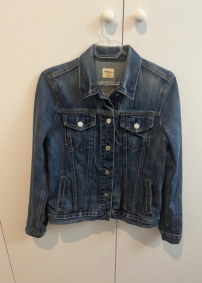 Gap düğmeli uzun kollu lacivert fitted denim ceket Notch yaka ve normal boy ile günlük sokak stilli için uygundur Xs beden tertemiz ve kusursuz Hiç giyilmedi
