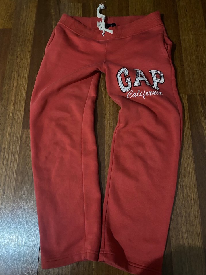 Gap markalı, koyu kırmızı renkli, bol kesim erkek çocuk eşofman altı. Fermuarlı ve desensiz, rahat ve kalın kumaştan üretilmiştir.