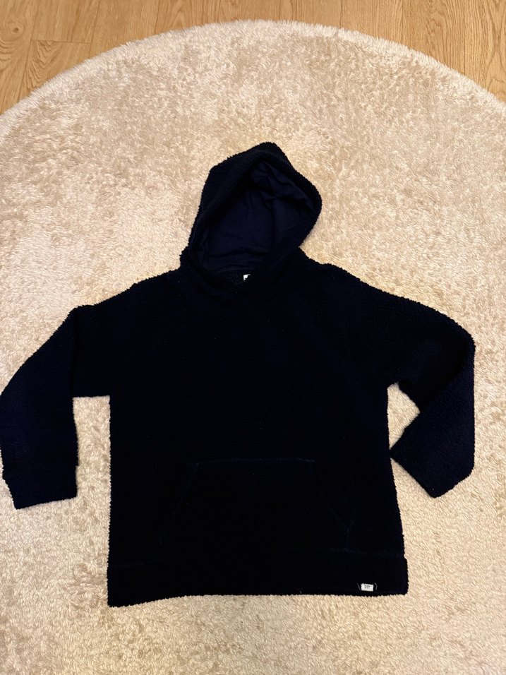 GAP Lacivert kapüşonlu sweatshirt, uzun kollu ve bol kesimdir. Yumuşak kumaştan yapılmış, sade ve günlük kullanıma uygun bir sokak stili üründür. Çocuk 14-16 yaş kadın bedeninde small a denk gelmektedir