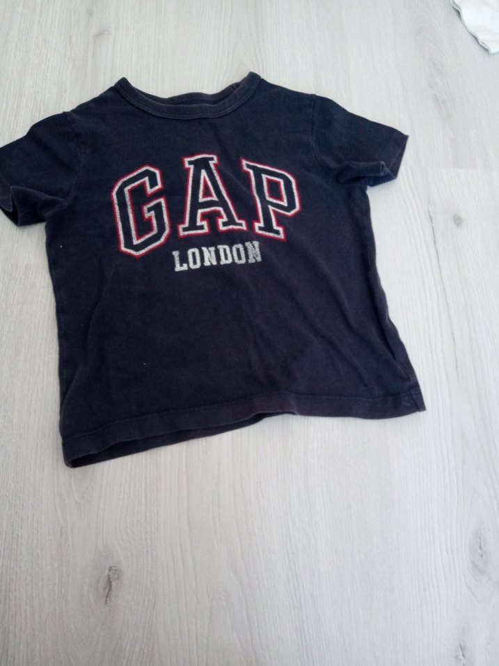 Koyu mavi renkli, kısa kollu, bisiklet yaka ve bol kesim erkek tişörtü, GAP Londra baskısı ile sokak stilini yansıtıyor.