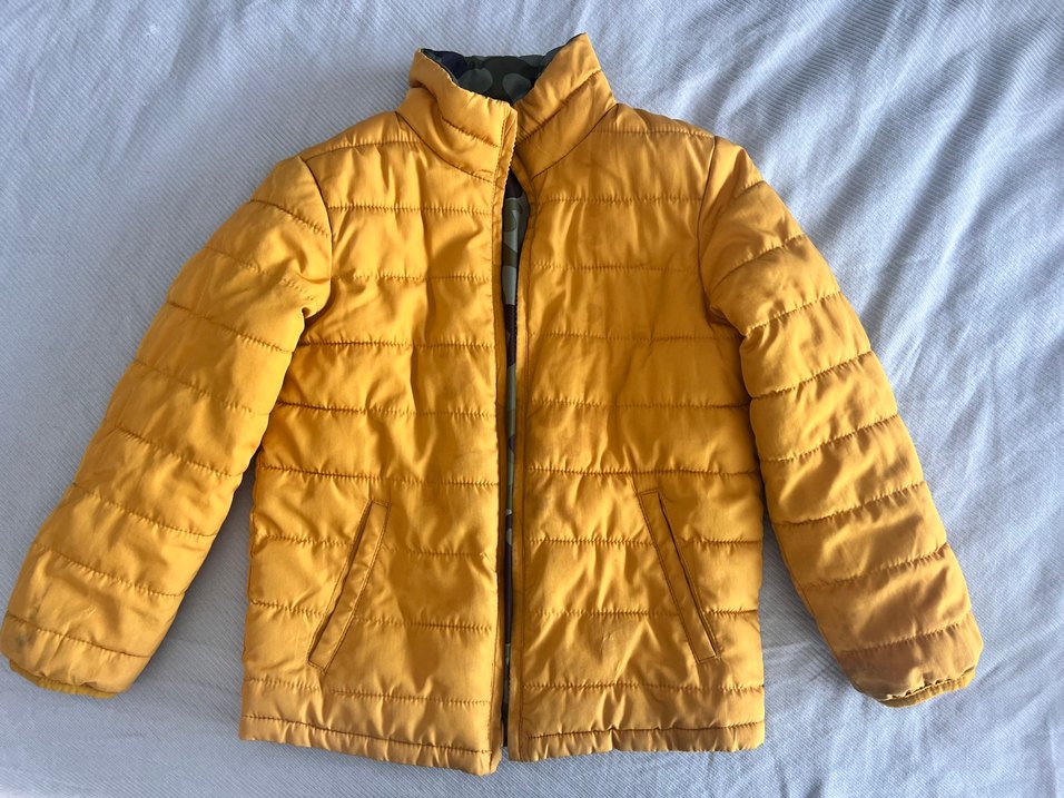Gap markadır Hiç bir kusuru yok Bedeni xs 4-5 yaş Bir tafaı sarı diğer tarafı yeşil kamuflaj desenli