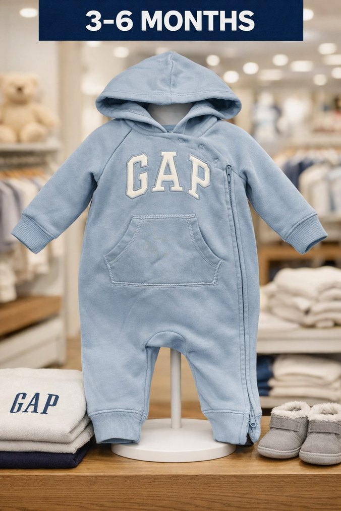 GAP Mavi Kapüşonlu Bebek Tulumu 3-6 Ay