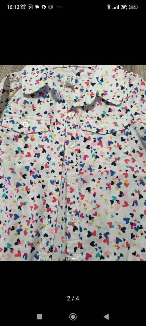 Renkli kalp desenli, kısa kollu, yakalı ve düğmeli kız çocuk gömleği. Yumuşak sentetik kumaştan, trend sokak stili için uygun. orjinal üründür