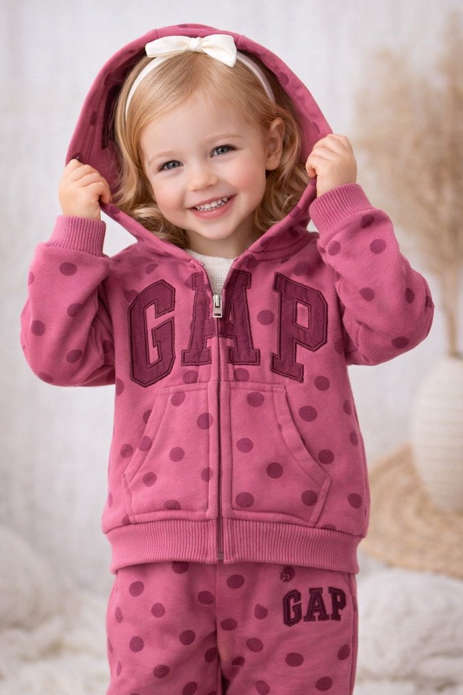 Pembe renkli, yumuşak dokulu 3 iplik kumaştan yapılmış, günlük kullanım eşofman takımı