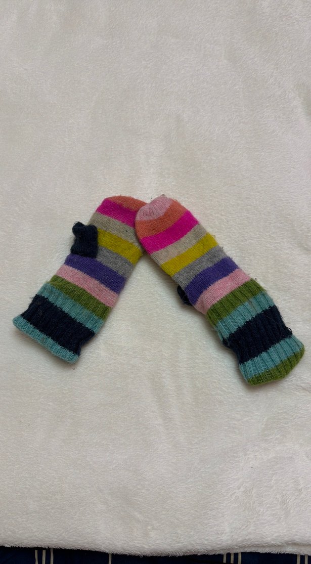 Renkli çizgili örgü kız çocuk eldiven, rahat ve bohem tarzda, parmakları açık tasarıma sahiptir.