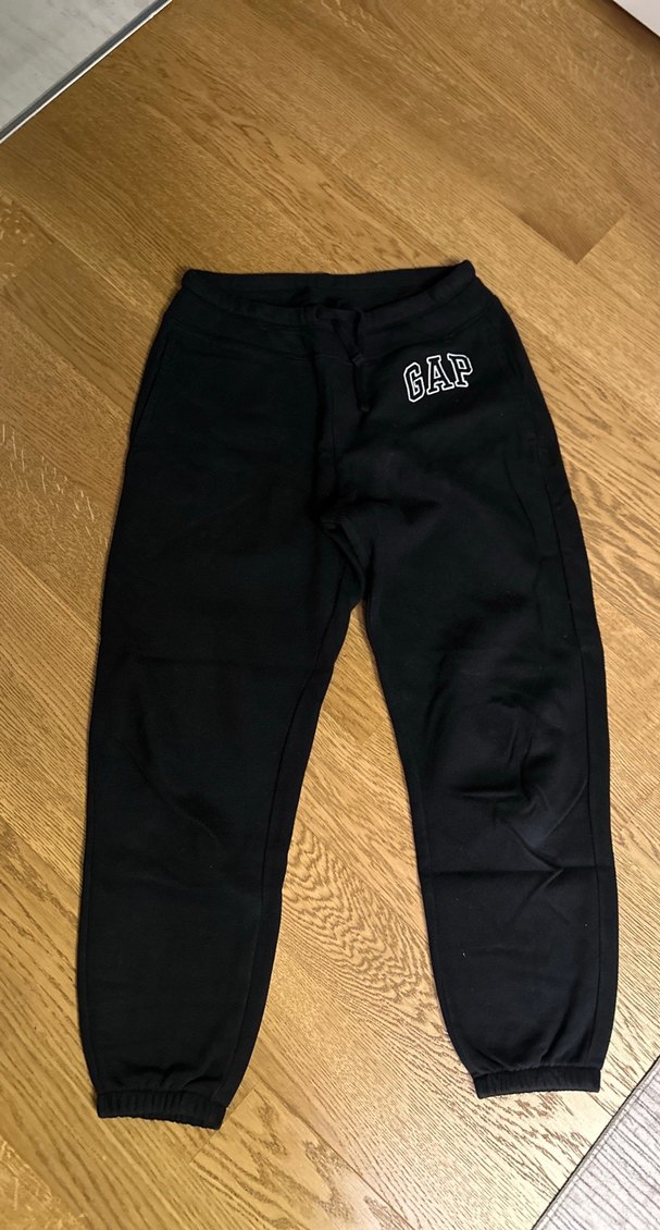 Siyah GAP eşofman altı, rahat kesim ve normal boyda, yumuşak ve sıcak kumaştan üretilmiş içi polarlı, 2 kere giyildi yenidir