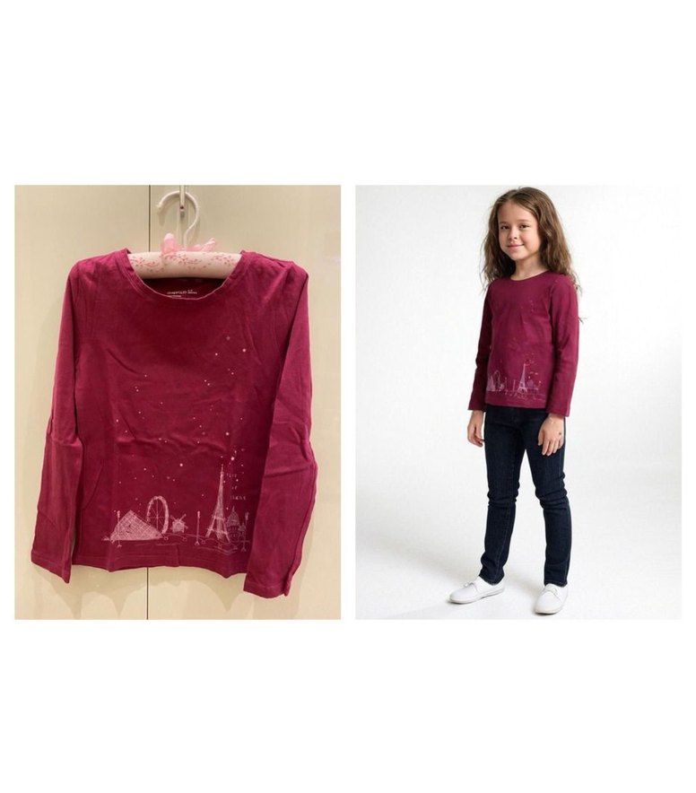 GAP uzun kollu Paris silueti baskılı tshirt City of light sloganlı 1 defa giyilmiştir 8-9 yaş *Sağ tarafta görülen gerçeğine yakın sanal giydirmeler bilgilendirme amaçlı görsellerdir*