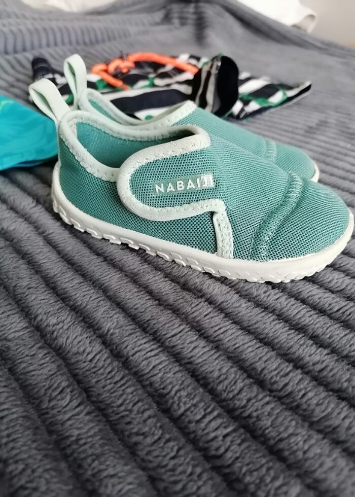 Hiç bir kusuru yoktur. Orijinal mağazadan alınmıştır. Oğlum çok rahat etti. Satıp oğlumun bedenine göre aynı modelden alıcam. Deniz şortu GAP marca. Mayo ve sandalet decathlondur.