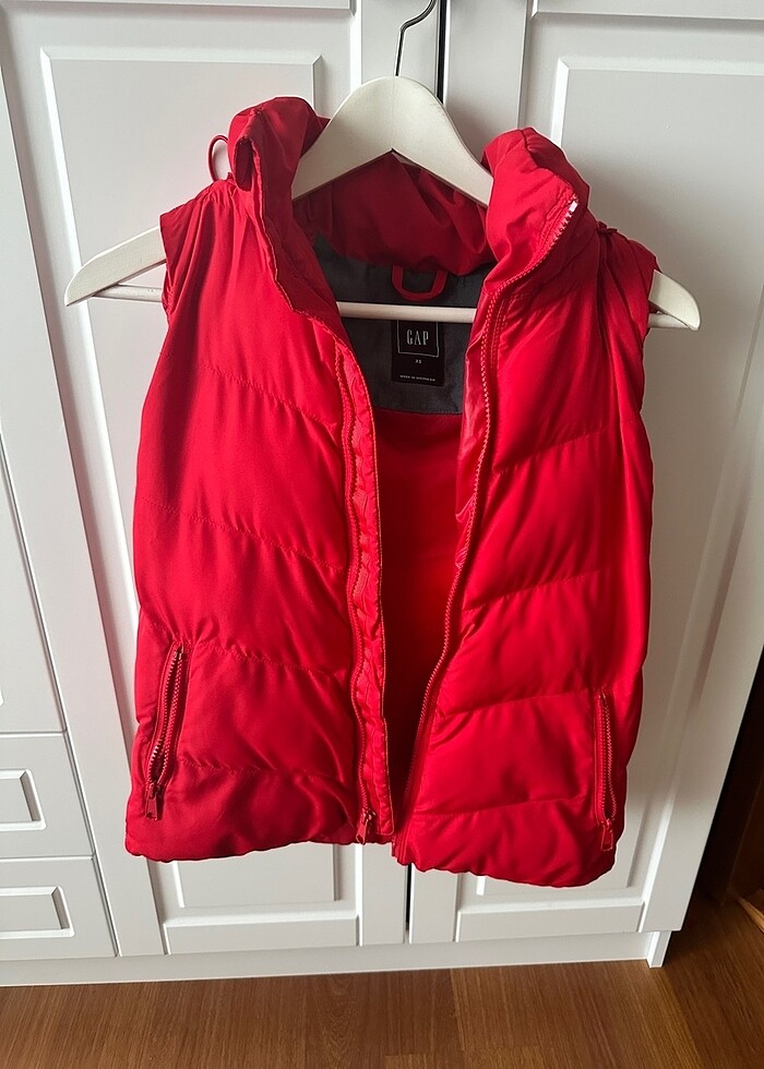 Orjianl yelek cok az kullanıldı fotografta görüldügü gibidir kaz tüyüdür sapka kısmı tercihen çıkarılabilir cepleri fermuarlı içi polar