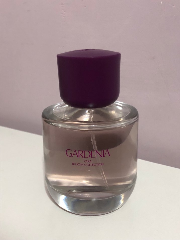 Gardenia Bloom parfümü, zarif gardenya çiçeği kokusuyla, şeffaf cam şişede koyu mor kapakla sunuluyor. 90 ml sadece kokusuna bak için sıkıldı