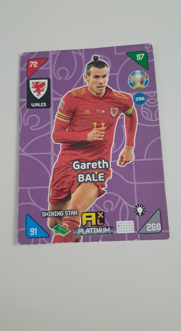 Bu erkek rozeti, Gareth Bale'in bordo futbol formasıyla detaylı istatistikler ve logolar içerir. Bale'i pop kültür athleisure stilinde parlayan yıldız olarak vurgular. ⚽