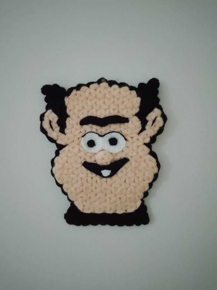 Koyu kahverengi ve bej tonlarda örgü yüz şeklinde, banyoda keyifle bebeklerinize ve çocuklarıniza eğlence katacak bir lif kesesidir.