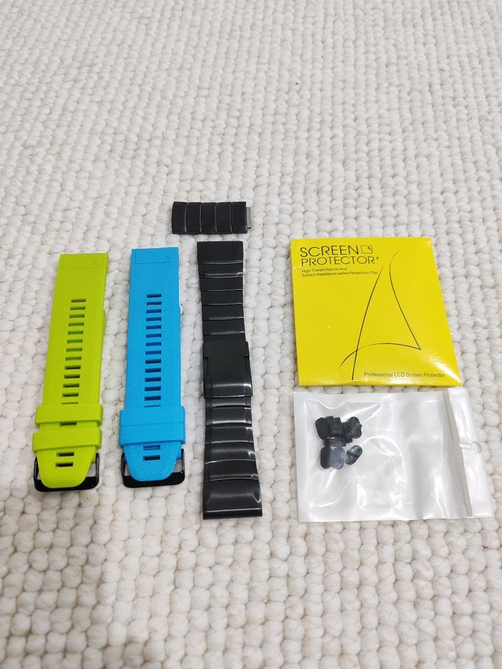 3 kordonda sadece birkaç kez kullanılmış, tertemizdir. Plastik kordonların tanesi 350 TL, çelik kordon 1000 TL'dir. Hepsi Quickfit özelliklidir. Garmin Fenix 5x ve benzer modellerle uyumlu 1 adet ekran koruyucu + 9 adet şarj soketi koruyucu = 300 TL'dir. İlan fiyatı toplu alım için geçerlidir. Tek alımlarda yeni ilan açtırınız.