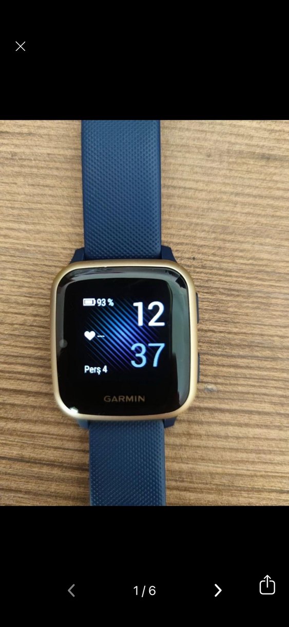 Garmin marka mavi kayışlı akıllı saat, ekranında pil durumu, kalp atış hızı ve zamanı net şekilde gösterir. Pil %93 seviyesinde. ⌚aksesuarlar için ayrı satış açabilirim
