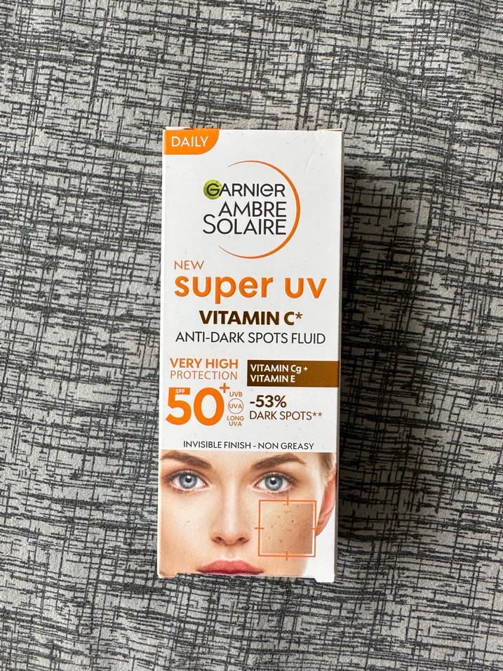 Garnier Ambre Solaire super UV Vitamin C içeren, SPF 50 çok yüksek koruma sağlayan, koyu lekeleri %53 azaltan, görünmez ve yağlı his bırakmayan güneş kremidir. ☀️ Garnier Ambre Solaire Super UV Vitamin C SPF 50+ Leke Karşıtı Güneş Koruyucu 40ml, iade yok❌