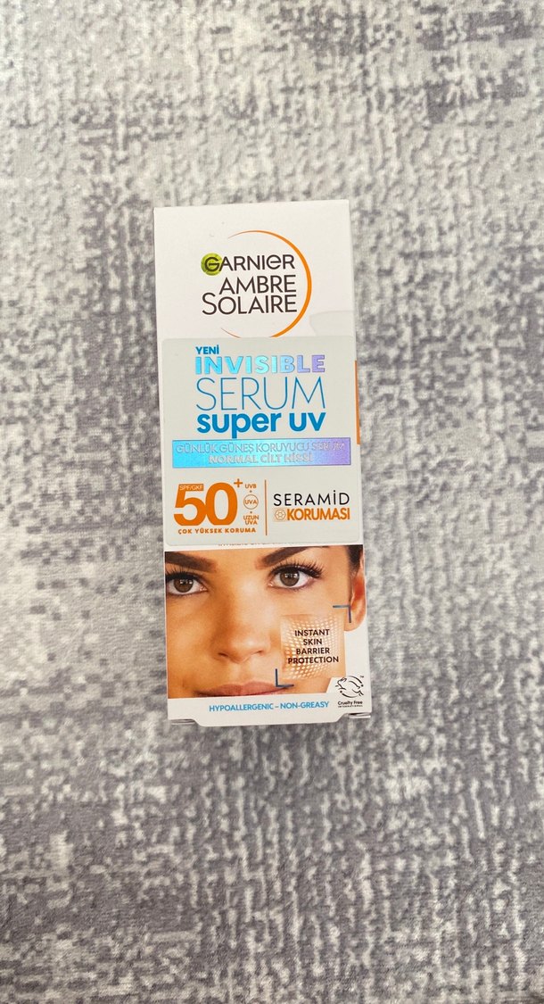 Garnier Ambre Solaire Görünmez Serum, SPF 50+ çok yüksek koruma ve seramid koruması sunar. Anında cilt bariyeri koruması sağlar, hipoalerjenik ve yağsızdır.