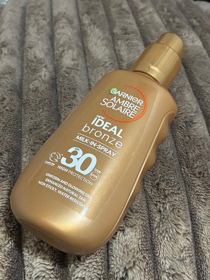Garnier Ambre Solaire Ideal Bronze SPF 30 koruma sağlayan süt sprey, eşit ve parlak bronzluk için uygundur. Yapışkan olmayan ve suya dayanıklıdır. ☀️