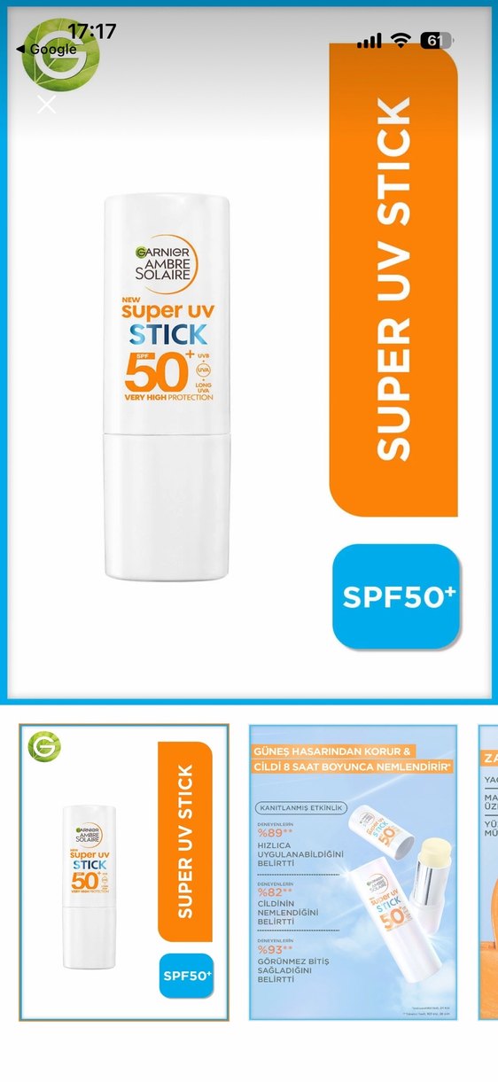 Garnier marka stick 50 spf güneş koruyucu. Ürün açılmadı, yenidir. Elimde 2 adet olduğundan dolayı satıyorum. Uzun süre kullanıma uygundur, çabuk bitmiyor. Yağlanma yapmıyor, günlük kullanım için oldukça uygun.