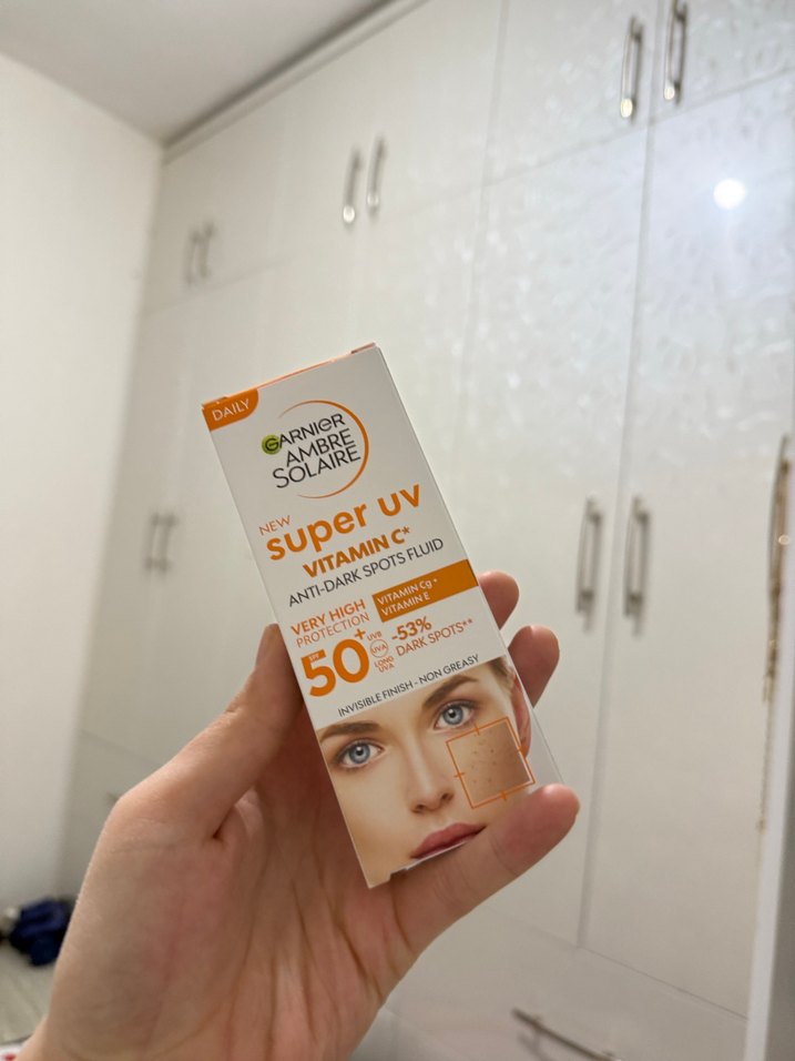 Garnier Ambre Solaire Super UV güneş koruyucu, SPF 50+ koruma ve C vitamini ile koyu lekeleri azaltmaya yardımcı olur. Yağlı olmayan ve ciltte görünmez. ☀️