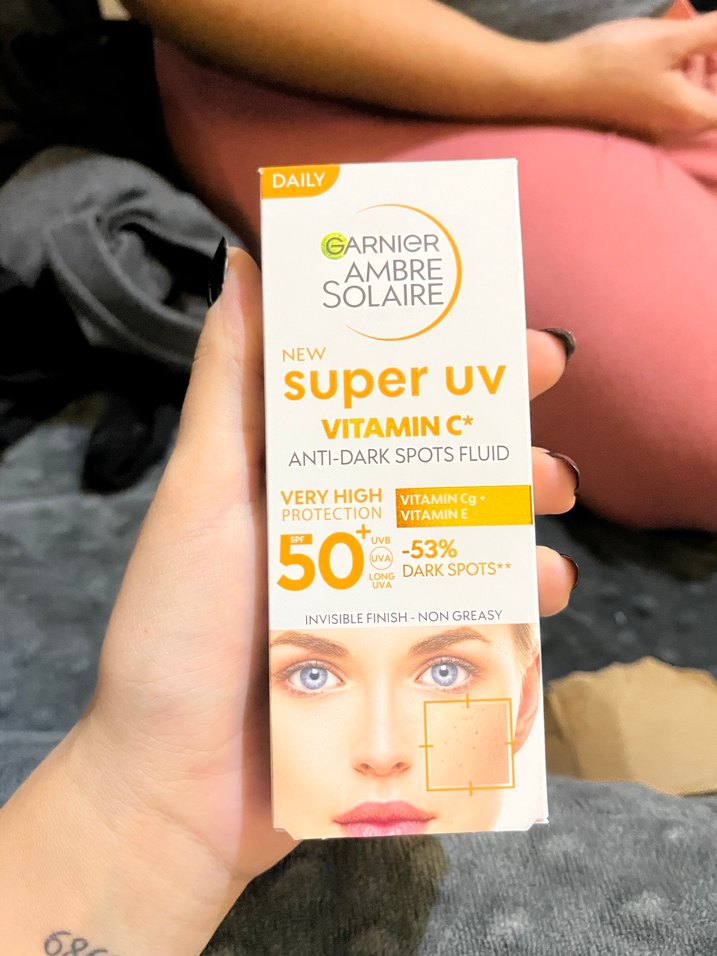 Garnier Ambre Solaire Super UV, SPF 50 ile çok yüksek koruma sağlar. C ve E vitamini içerir, koyu lekeleri %53 azaltır. Görünmez bitişe ve yağsız dokuya sahiptir. ☀️ ürün hediye geldi hiç açmadım bile sıfır.