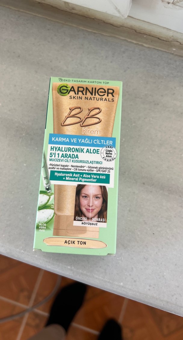Garnier BB Krem açık ton, karma ve yağlı ciltler için hyaluronik asit ve aloe vera ile 5'i 1 arada bakım sunar. Cilt tonunu eşitler ve SPF 25 koruması sağlar. YENİ, hiç kullanılmadı.