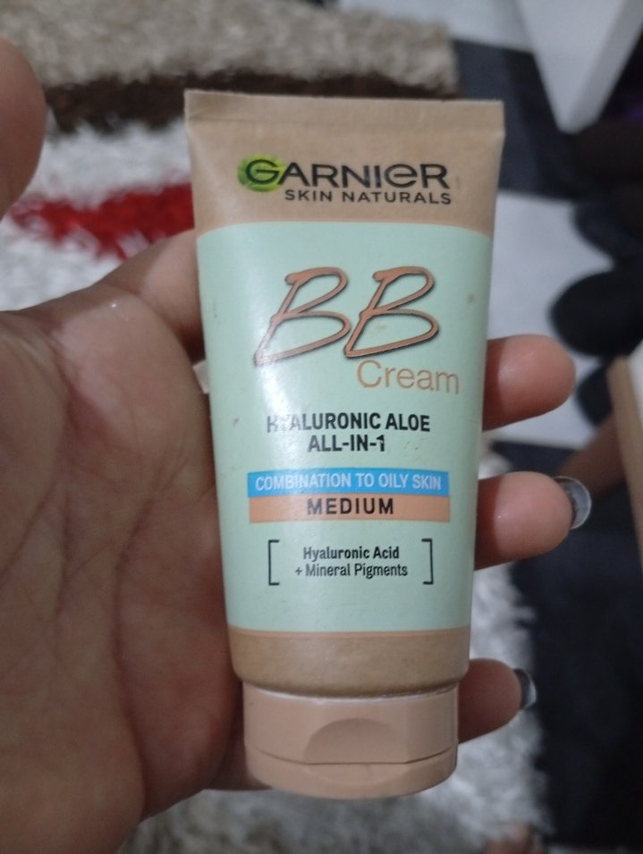 Garnier BB Krem, medium beige tonunda, aloe ve hyaluronik asit içerir. Karma ve yağlı ciltler için uygundur, mineral pigmentler içerir.