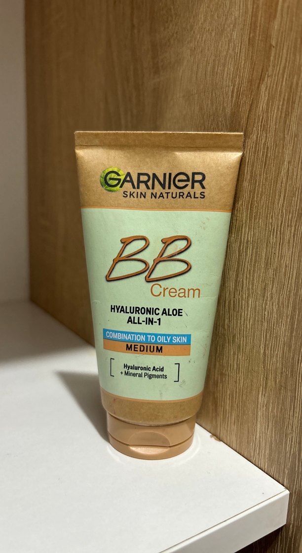 Garnier BB Krem, orta ton bej renkte, hyaluronik asit ve aloe içerir. Kombine ve yağlı ciltler için çok amaçlı formüldür.