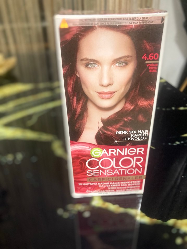 Garnier Color Sensation 4.60 saç boyası, renk solmasına karşı teknoloji ile 10 haftaya kadar kalıcı canlı kızıl tonlar sunar. ♀️