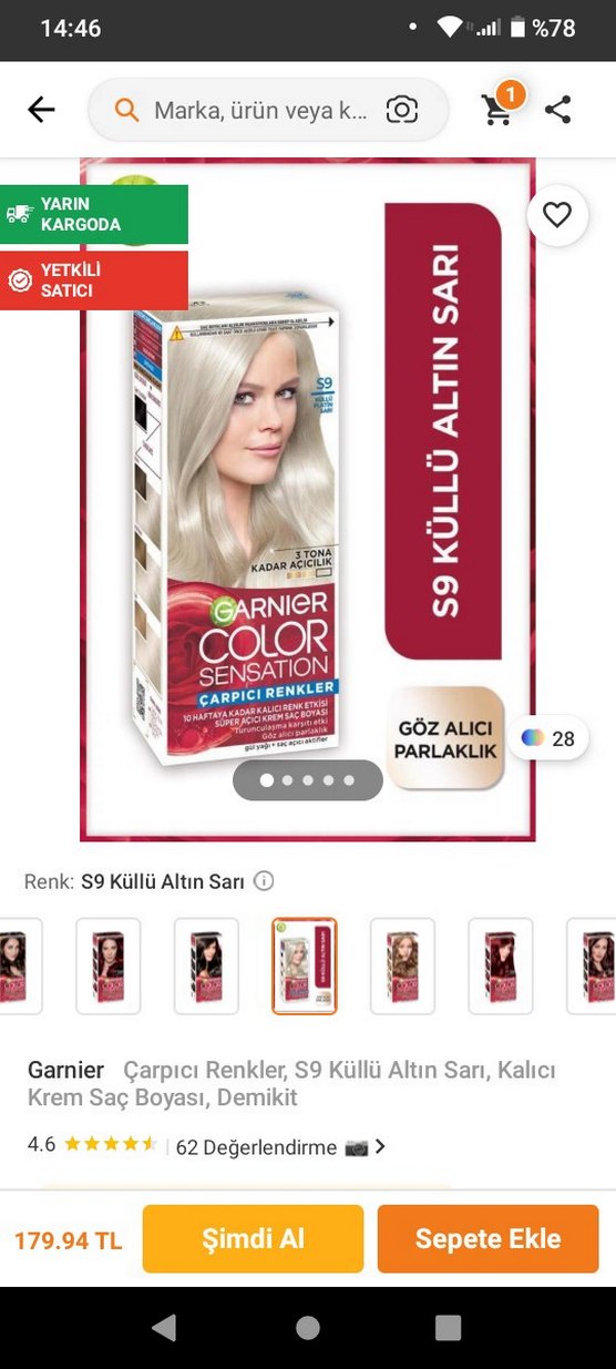 Garnier Color Sensation S9 Küllü Altın Sarı saç boyası, kalıcı krem formülü ve göz alıcı parlaklık sunar. ♀️