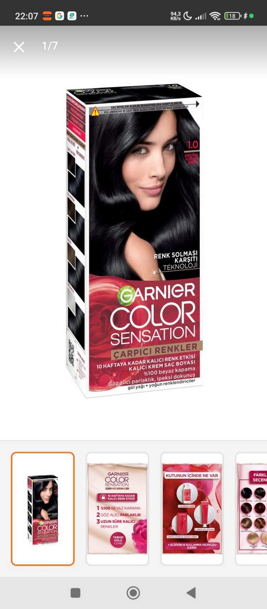 Garnier Color Sensation saç boyası, renk solmasına karşı teknoloji ile 10 hafta kalıcı canlı siyah renk ve %100 gri kapama sunar. Parlak ve ipeksi dokunuş sağlar.