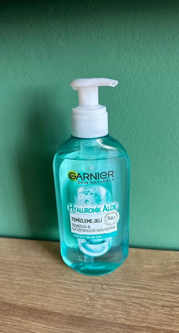 Garnier Hyaluronik Aloe temizleme jeli, cildi nazikçe temizler ve gözenekleri sıkılaştırır, tüm cilt tipleri için uygundur. Hiç kullanılmamıştır.