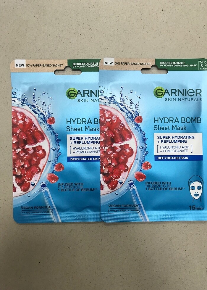 Hiç kullanılmadı etiketli garnier yüz maskesi 2 adet